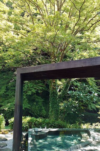 今日も朝からいきなり暑いけれど朝食の前にお風呂♪ 緑と川に包まれたお風呂で深呼吸 さて朝ごはん。完全なる素泊まりにすることも考えましたが、公式HPで見たお重の朝ごはんがとても可愛らしくてほっとけなかったのと、せっかくいい旅館に来ているのに1食も…