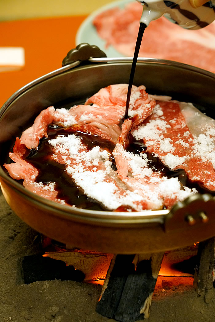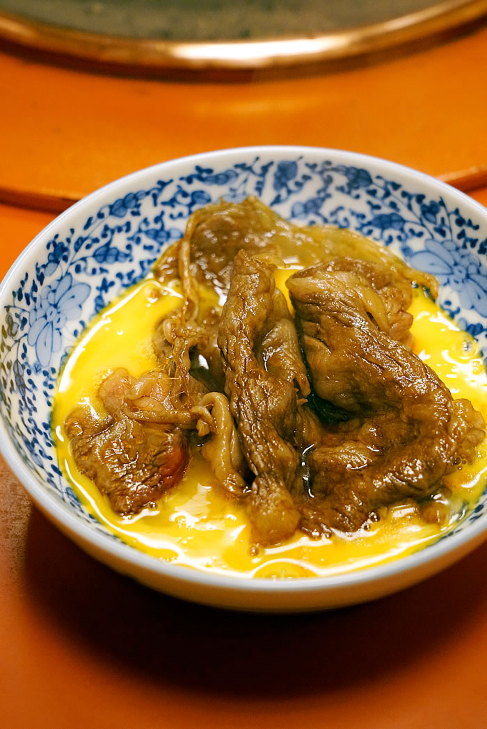 割り下は使わず、白砂糖・たまり醤油・昆布だしで味付けの関西流にテンション上がる☆