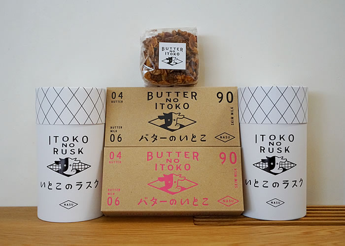 いとこのラスク(プレーン・チョコ)、グラノーラ、バターのいとこ(ミルク・あんバター)。