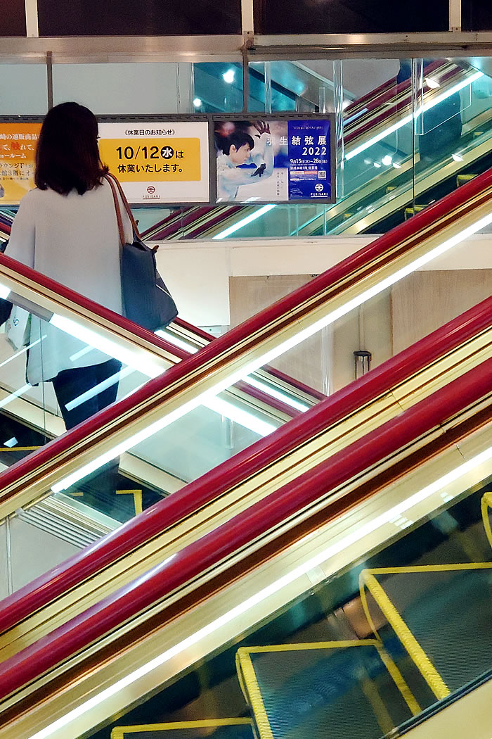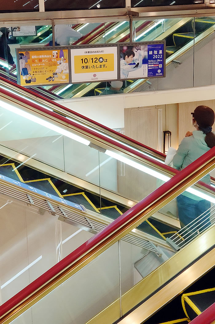 ※ 上記2枚の写真ですが、見つめるかたを狙って撮ったわけではなく、エスカレーター沿いのポスターをひたすら撮っていたらたまたま写っていたものです。