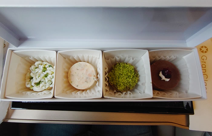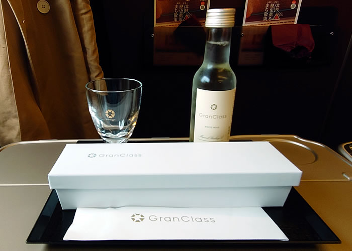 乗車するとまもなくアテンダントのかたがご挨拶に来てくださりウェルカムギフト?をくださいます。