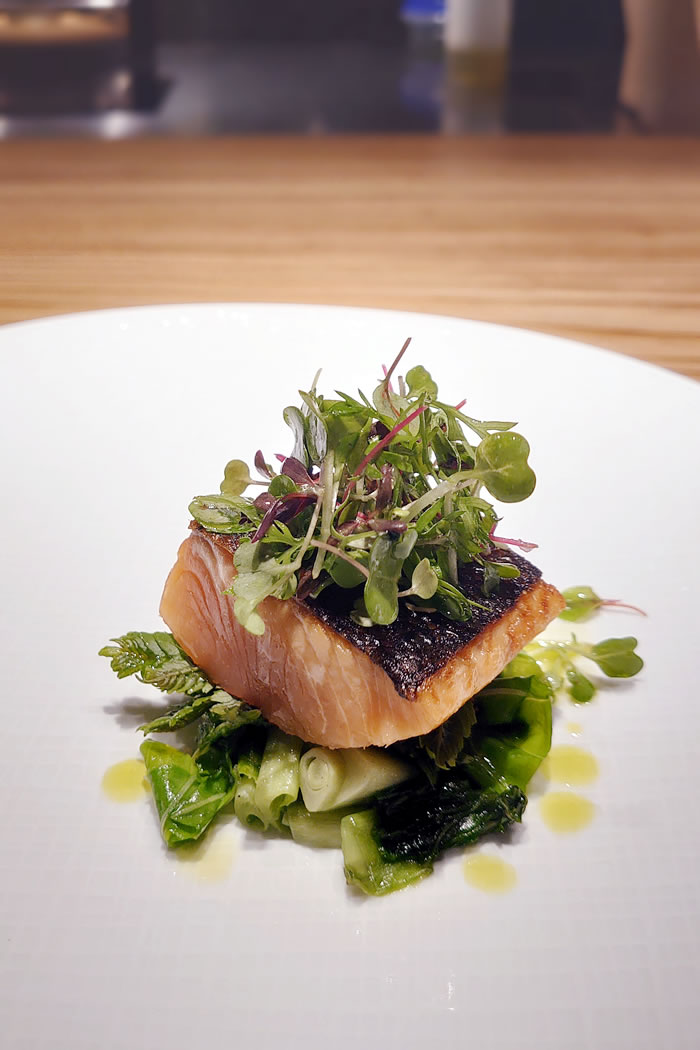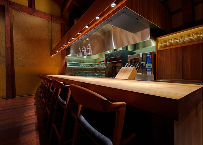 特等席はカウンター。シェフがお料理を仕上げていく様子を目の前で見られる贅沢よ。