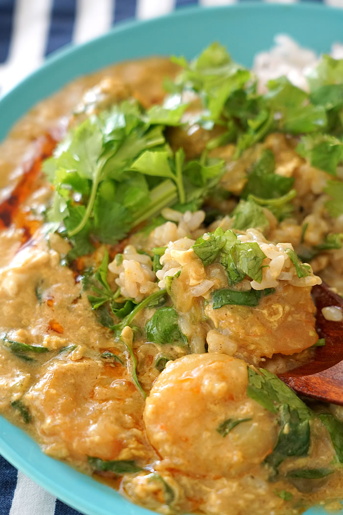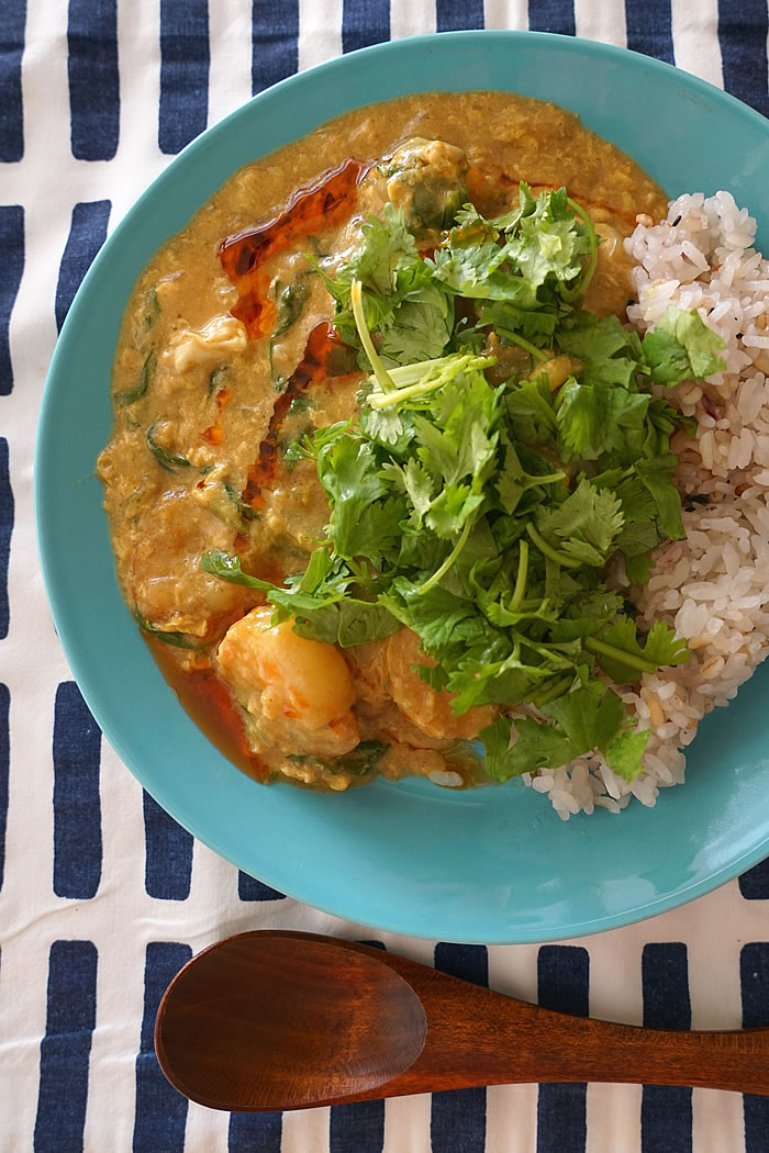 1年ほど前に、NHKあさイチの料理コーナーでパクチーボーイことエダジュンが紹介していたクンパッポンカリー(えびの卵とじカレー炒め)。