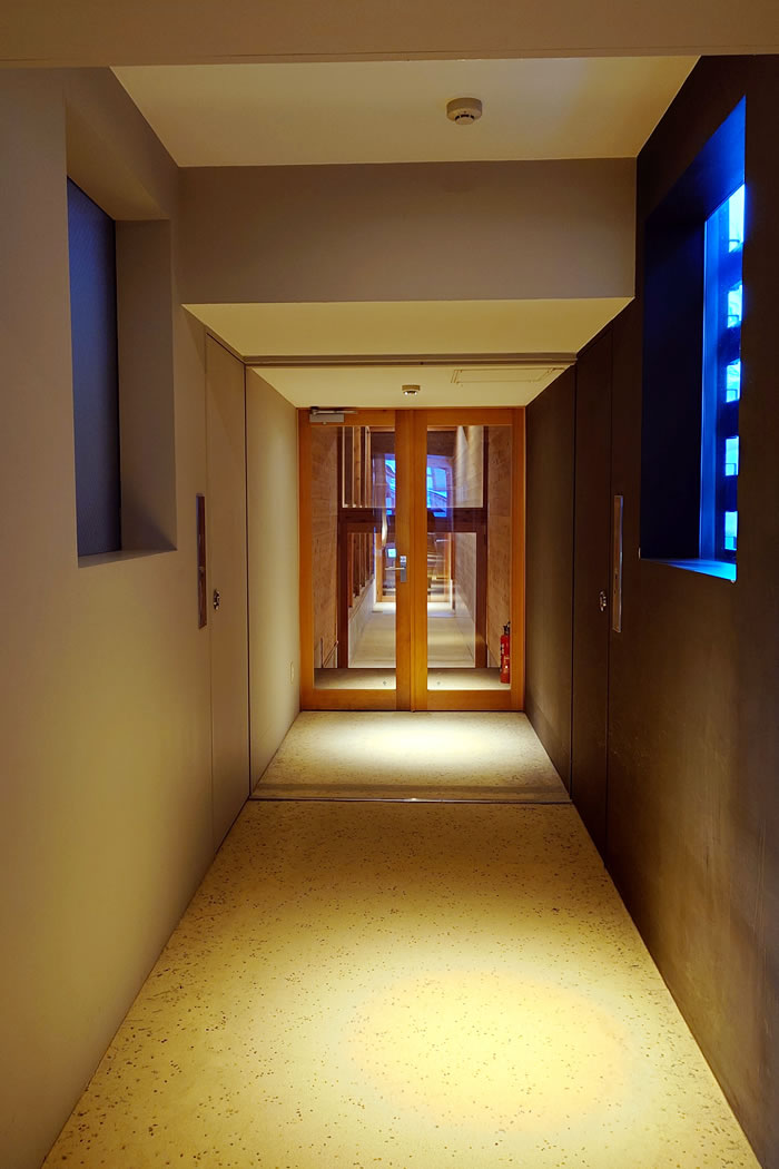ガラスの扉を開けると渡り廊下登場。スペシャル感がすさまじい。