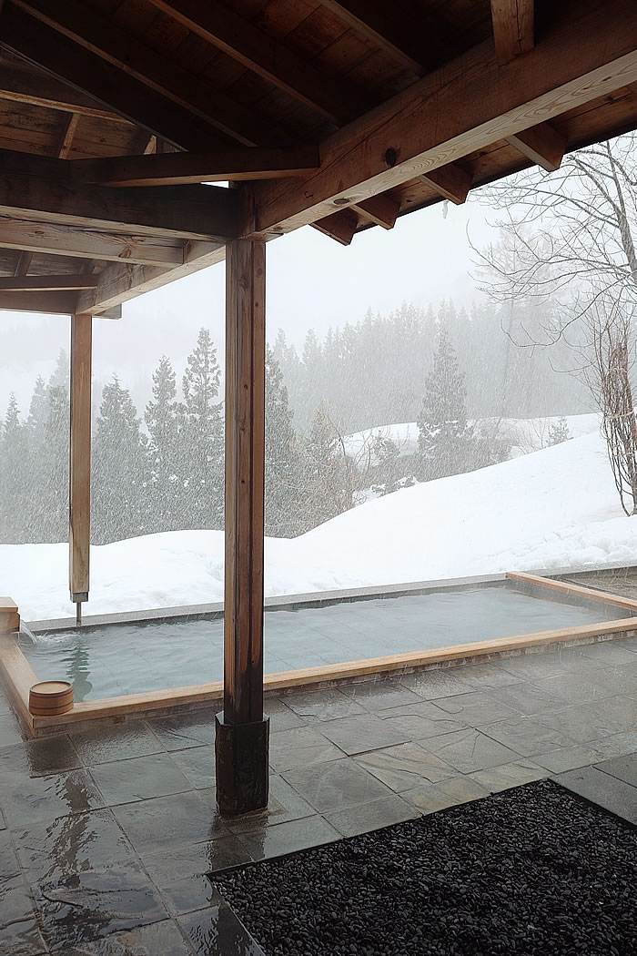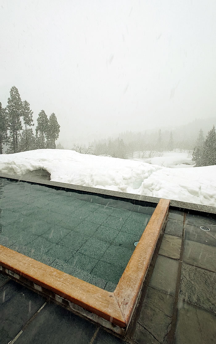湯舟の上に屋根がないので雪がんがん落ちて、完全にぬくまっとる涙