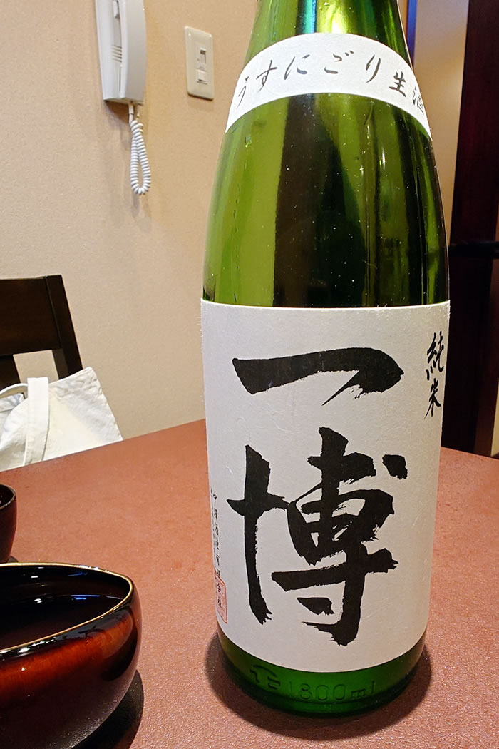 お初にお目にかかる「一博」の純米で乾杯。
